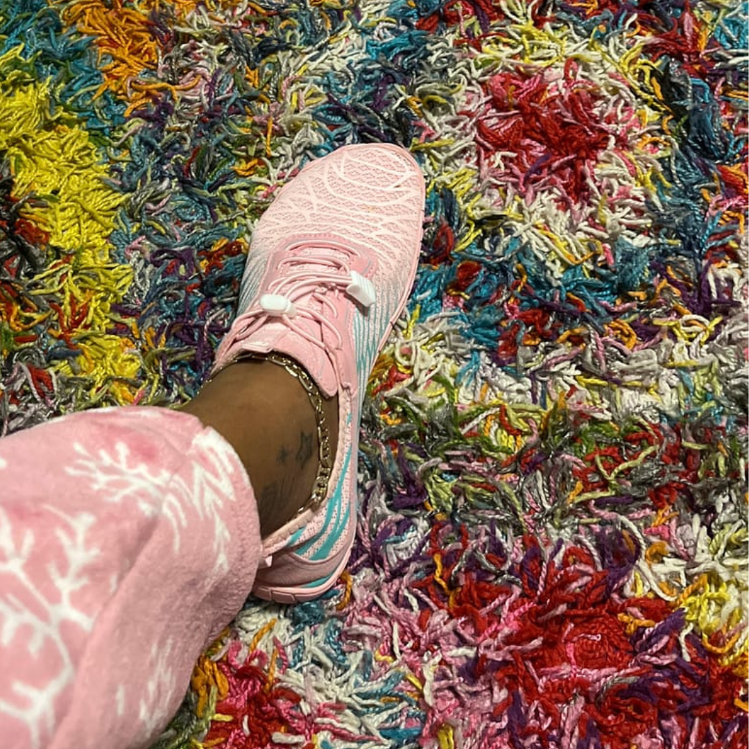 The ultra-light and flexible 4mm thin sole allows a natural gait, promoting the natural alignment of your feet. This effectively prevents common discomforts in your knees, hips, back, ankles, and feet.